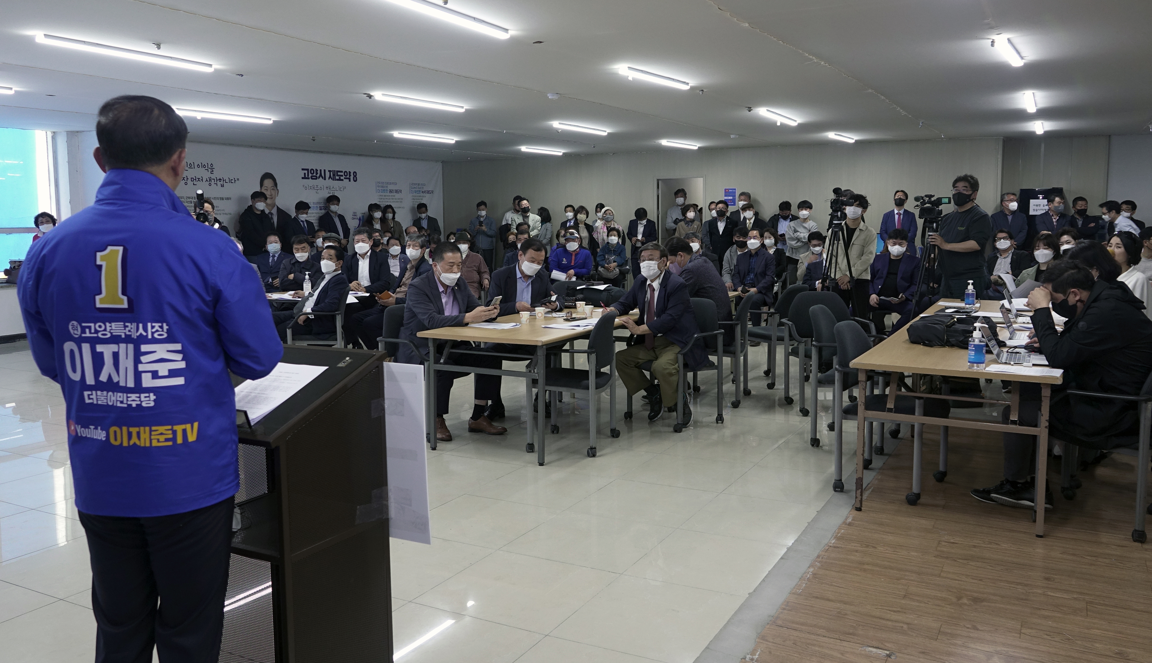 고양시장인 이재준 더불어민주당 고양시장 예비후보가 25일, 고양시 일산동구 선대위 사무실에서 고양시장 재선 출마를 선언하는 기자회견을 갖고 복격적인 행보에 나섰다.
