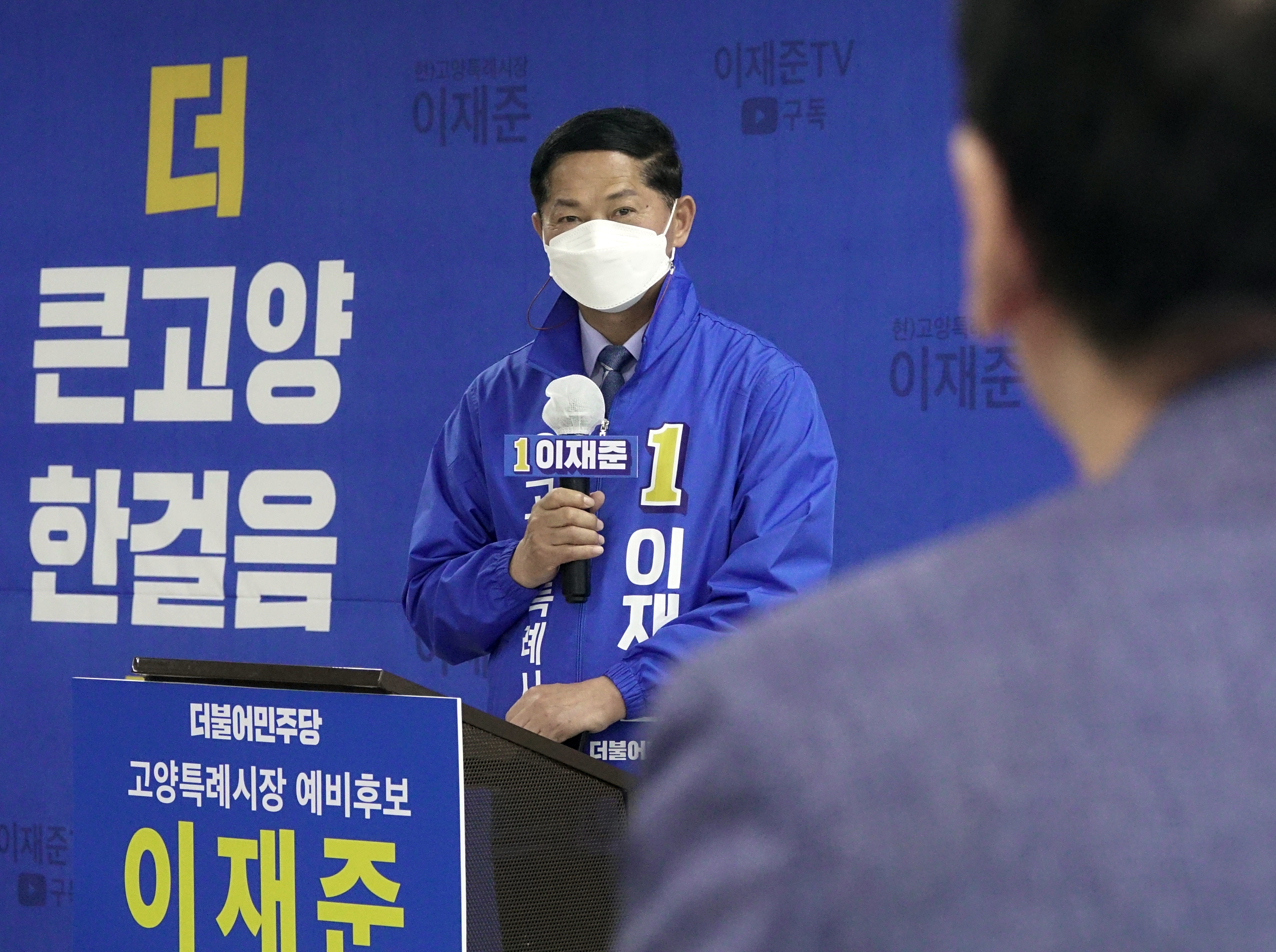 이재준 더불어민주당 고양시장 예비후보가 25일 출마 기자회견을 하는 모습.