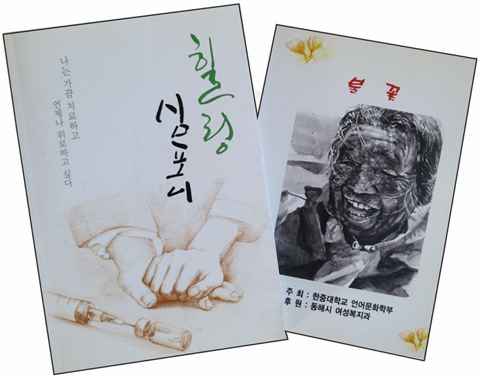 Q.한중대학교 <불꽃> 잡지 표지그림과 박희백 의사의 <힐링 심포니> 책의 그림을 그리게 된 계기와 기억에 남는 점은?