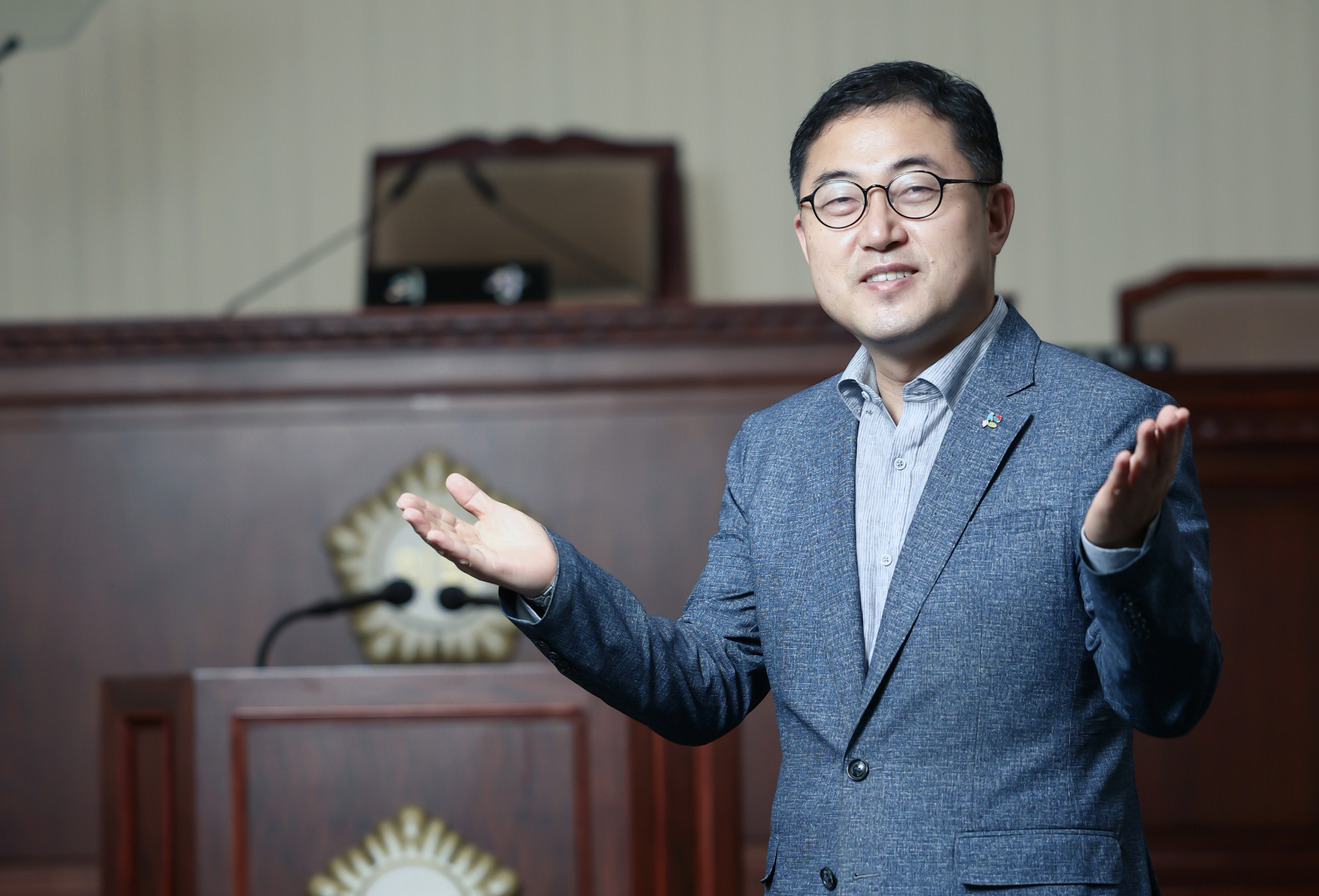 [신성대 기자] 정부 기능을 분담하기 위해 지어진 행정 도시이자 계획도시이고, 대표적인 전원도시이자 서울특별시의 위성도시인 과천시는 인구 8만 명과 정부과천청사 인원 8천 명 수준의 행정 도시에서 인구 15만 명과 산업클러스터 인원 10만 명 이상 자족도시로의 새로운 도약을 추진하고 있는 과천시의회 김진웅 의장을 만났다.