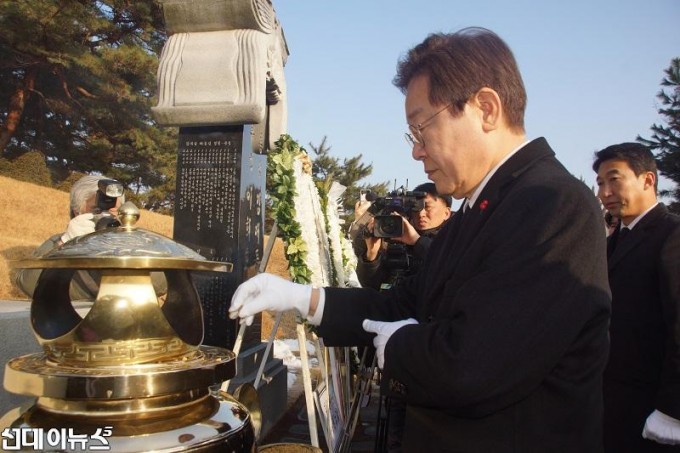 [선데이뉴스신문=이종록 기자] 더불어민주당 이재명 대표는 오늘 1월 1일(월) 오전 7시 40분 서울 여의도 더불어민주당사 2층 당원존에서 신년인사회를 마친후 서울 동작구 국립현충원 고 김대중 대통령 묘소를 찾아 참배 하였다.