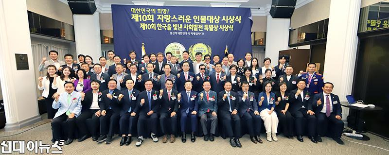 [선데이뉴스신문=이종록 기자] "당신이 대한민국 미래입니다" 대한민국을 빛낸 자랑스러운 인물 발굴 프로젝트 제10회 2024 자랑스러운 인물대상 시상식이 9월 11일(수) 오후 2시 30분에 한국프레스센터 20층 내셔널프레스클럽에서 수상자 및 축하객이 참석한 가운데 대회 조직위원회(명예대회장 이주영 전 해수부장관/전 국회부회장, 조직위원장 신민정 선데이뉴스 대표이사)와 한국언론연합회, 월간 선데이뉴스에서 주관했다. 이번행사는 한국을빛낸사회발전 특별상 시상식도 같이 진행됐다.
