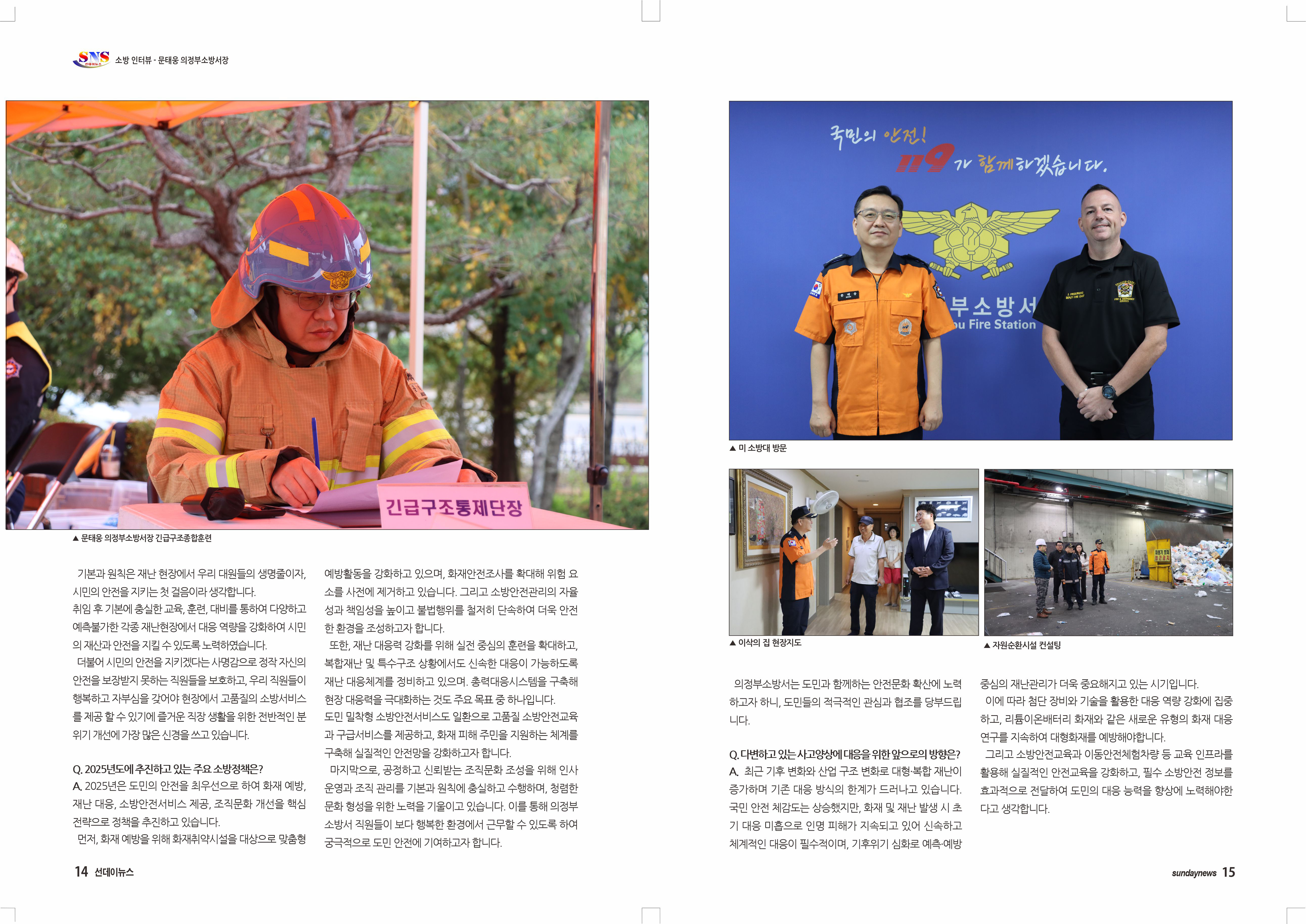 Q. 의정부의 소방안전을 책임지고 있는 후배들에게 조언이 있다면?