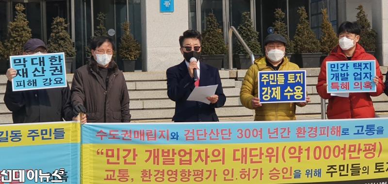[선데이뉴스신문=정재헌 기자]인천시 북부권 2040 완충녹지 입(안) 오류왕길동 반대 비상대책위원회 및 오류왕길동 주민들과 환경단체 글로벌에코넷, 인천 행․의정 감시네트워크 등 시민단체들은 25일 “인천시와 박남춘 시장이 민간 개발업자의 신규사업을 위해 주민들의 토지를 강제로 수용했다”고 규탄하고 나섰다.