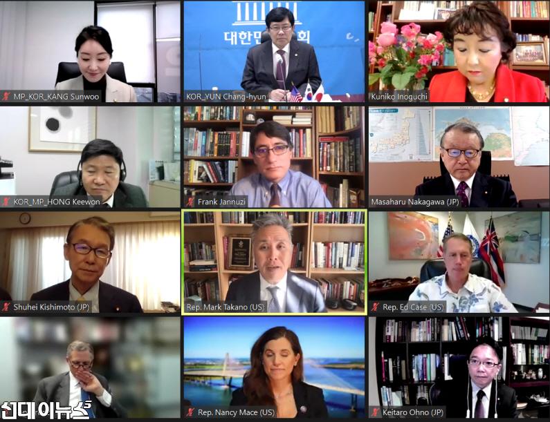 한편, 한미일 의원회의(TLEP)는 2003년 출범한 이후 연 2회 정례적으로 개최되고 있으며, 2020년 제27차 회의부터는 화상회의로 개최되어 코로나19 팬데믹 속에서도 한미일 3국간의 협력을 도모하는 데에 기여하고 있다고 주장했다.