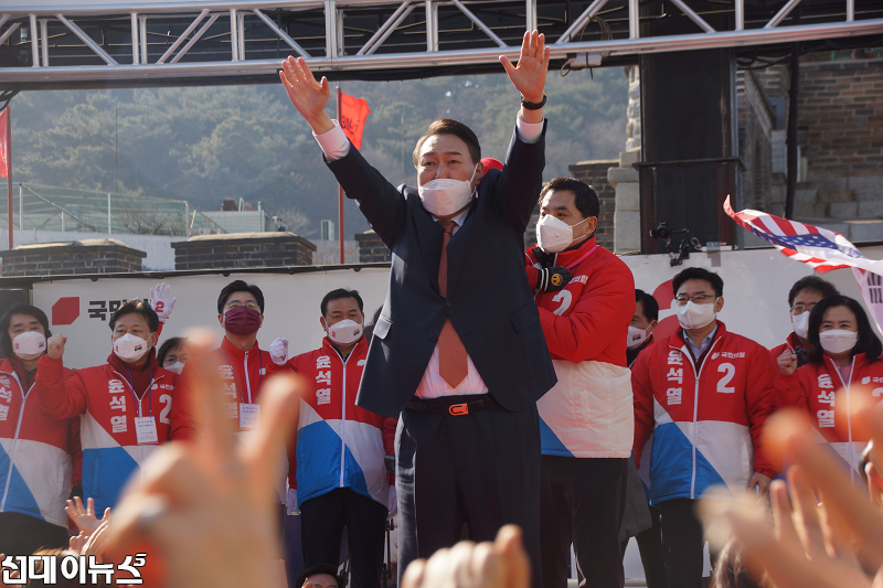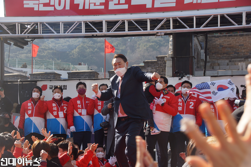 [선데이뉴스신문=이종록 기자] 윤석열 대통령 후보는 2022.2.24.(목) 14:00, 수원 팔달문 앞에서 “국민과 원팀” 경기도 수원 집중유세를 했다.