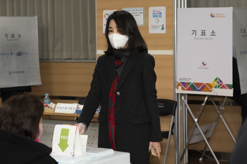 [선데이뉴스신문=이종록 기자] 국민의힘 윤석열 대통령 후보 배후자 김건희 대표는 오늘 3월 4일(금) 오전 11시 15분경 자택 인근 서초 1동 주민센터 사전투표소에서 사전투표를 했다고 밝혔다.
