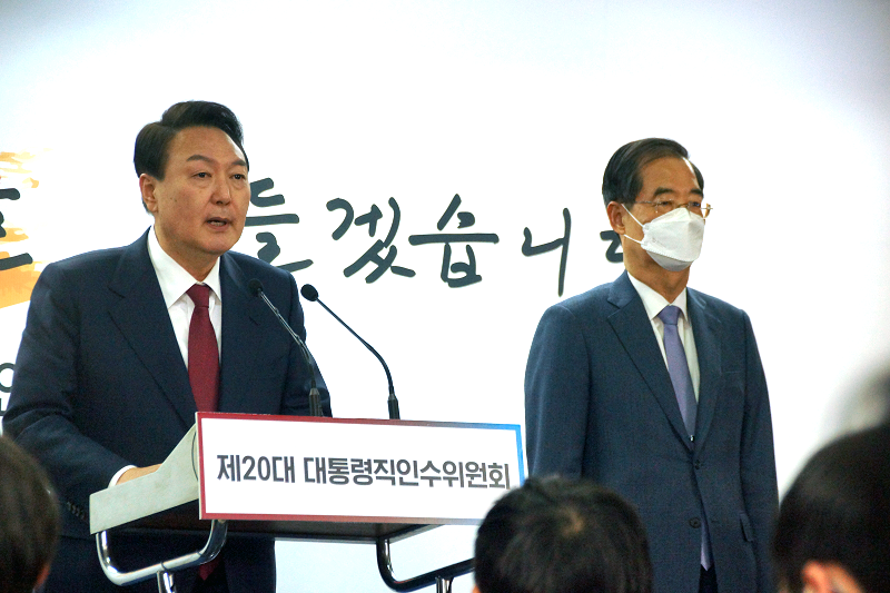 [이종록 기자] 우선 우리 대한민국을 둘러싼 대내외적으로 경제와 또 지정학적 여건이 매우 엄중한 때에 국무총리 지명이라는 이런 아주 큰 짐을 지게 돼서 우선 한편으로는 영광스러우면서도 매우 무겁고 또 큰 그런 책임을 느낀다고 한덕수 국무총리 내정자는 4월 3일(일) 오후 3시 30분 서울 종로구 통의동 금융감독원 대통령직인수위원회 기자회견장에서 밝혔다.